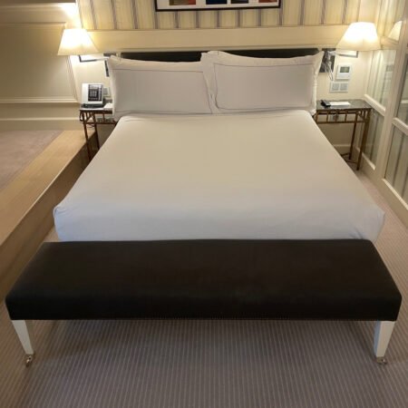 Banco pie de cama de madera y tapizado blanco