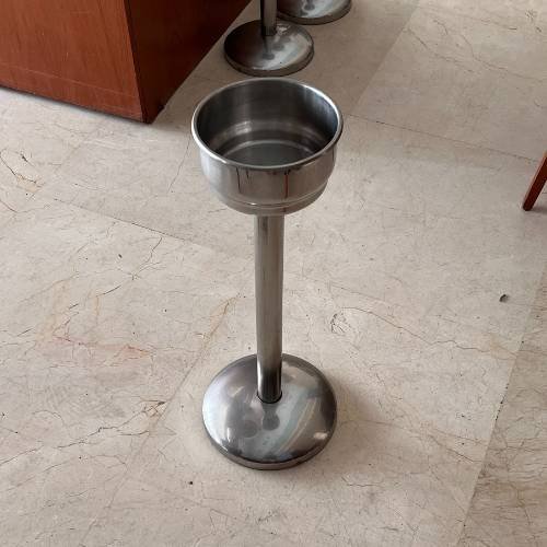 Botellero de acero inoxidable, con diseño clásico y base redonda estable. Ideal para bares, restaurantes, terrazas o uso doméstico.