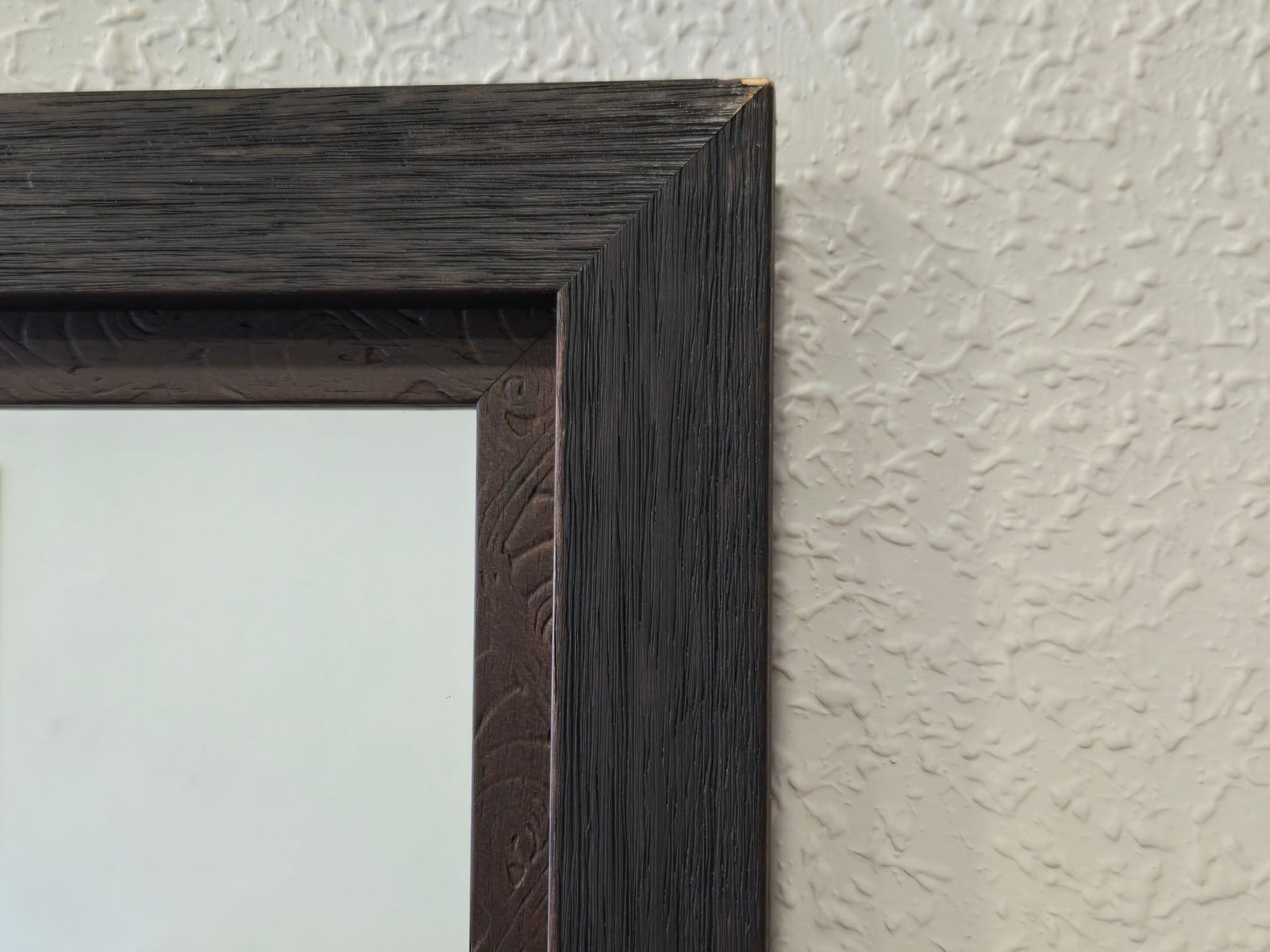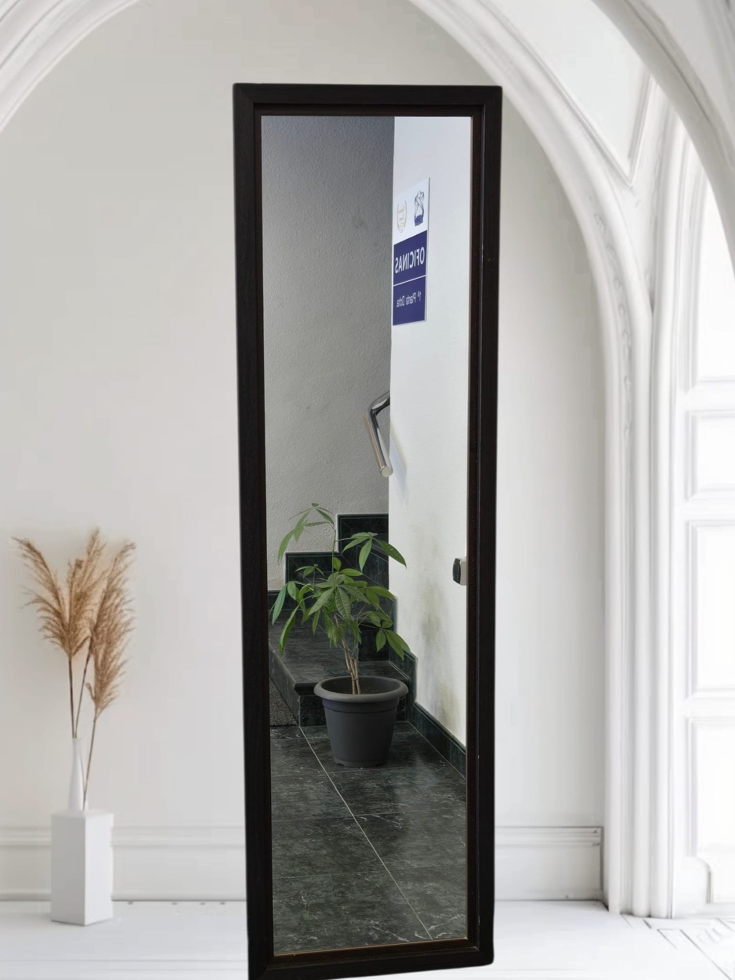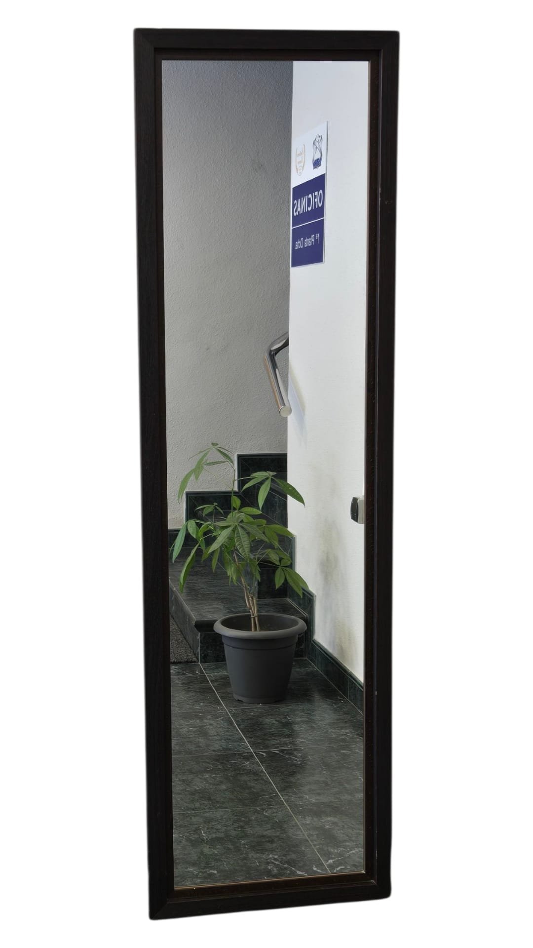 ESPEJO DE CUERPO ENTERO, EN MADERA, CON DETALLES GRABADOS EN LA MADERA EN EL MARCO INTERIOR