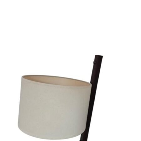 Aplique de pared con base metálica cromada, detalle en madera oscura y pantalla textil blanca en forma de prisma. Diseño elegante y moderno, ideal para dormitorios, pasillos u hoteles.