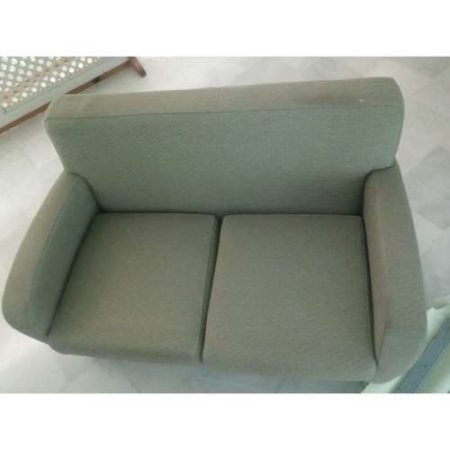 Sillón vintage tapizado en gris, con bastante uso, ideal para retapizar, cojín de asiento desmontable.