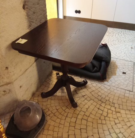 Mesa de madera en muy buen estado, resistente y de estilo clásico. Ideal para cualquier espacio.