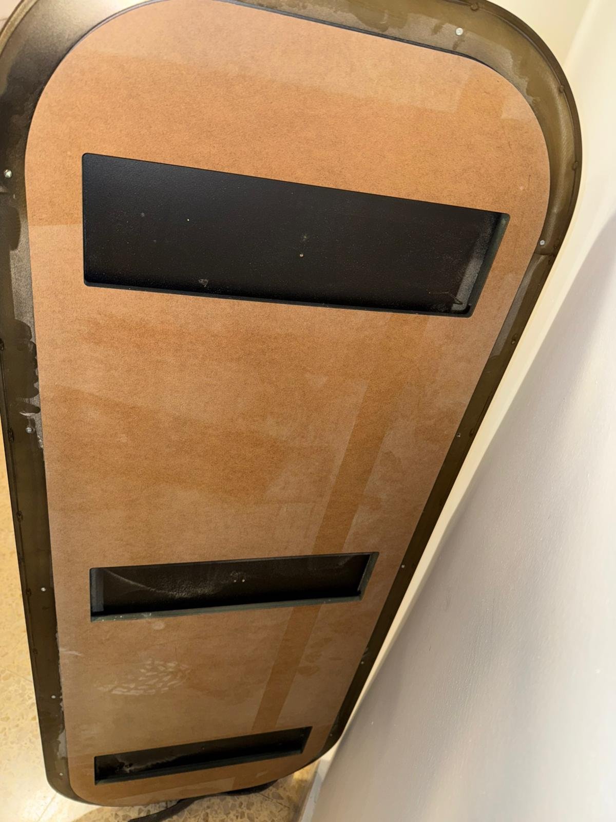Espejo de gran formato nuevo con acabado ahumado y bordes redondeados, que aporta un estilo elegante y actual. Su tamaño lo convierte en una pieza destacada y funcional.