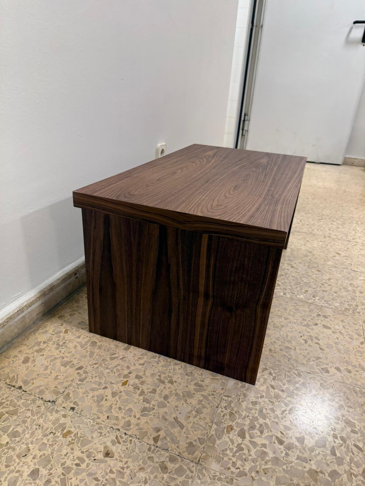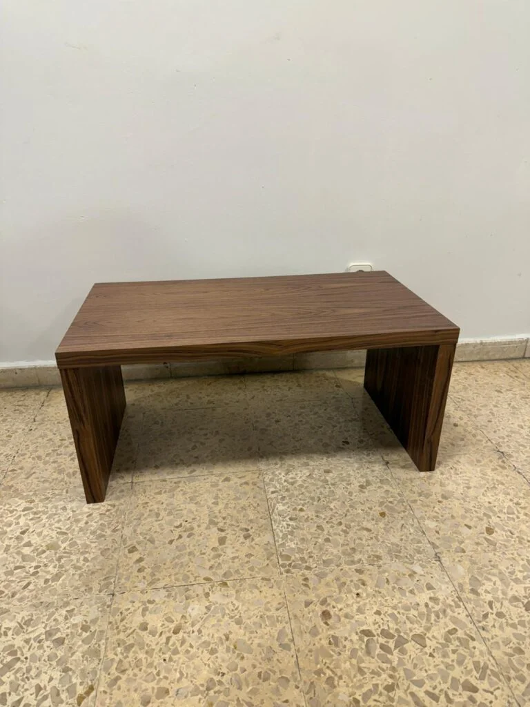 Mesa baja nueva con diseño sencillo y estructura robusta, fabricada en madera oscura que aporta calidez y un estilo sobrio. Su formato bajo y rectangular la hace práctica y funcional.