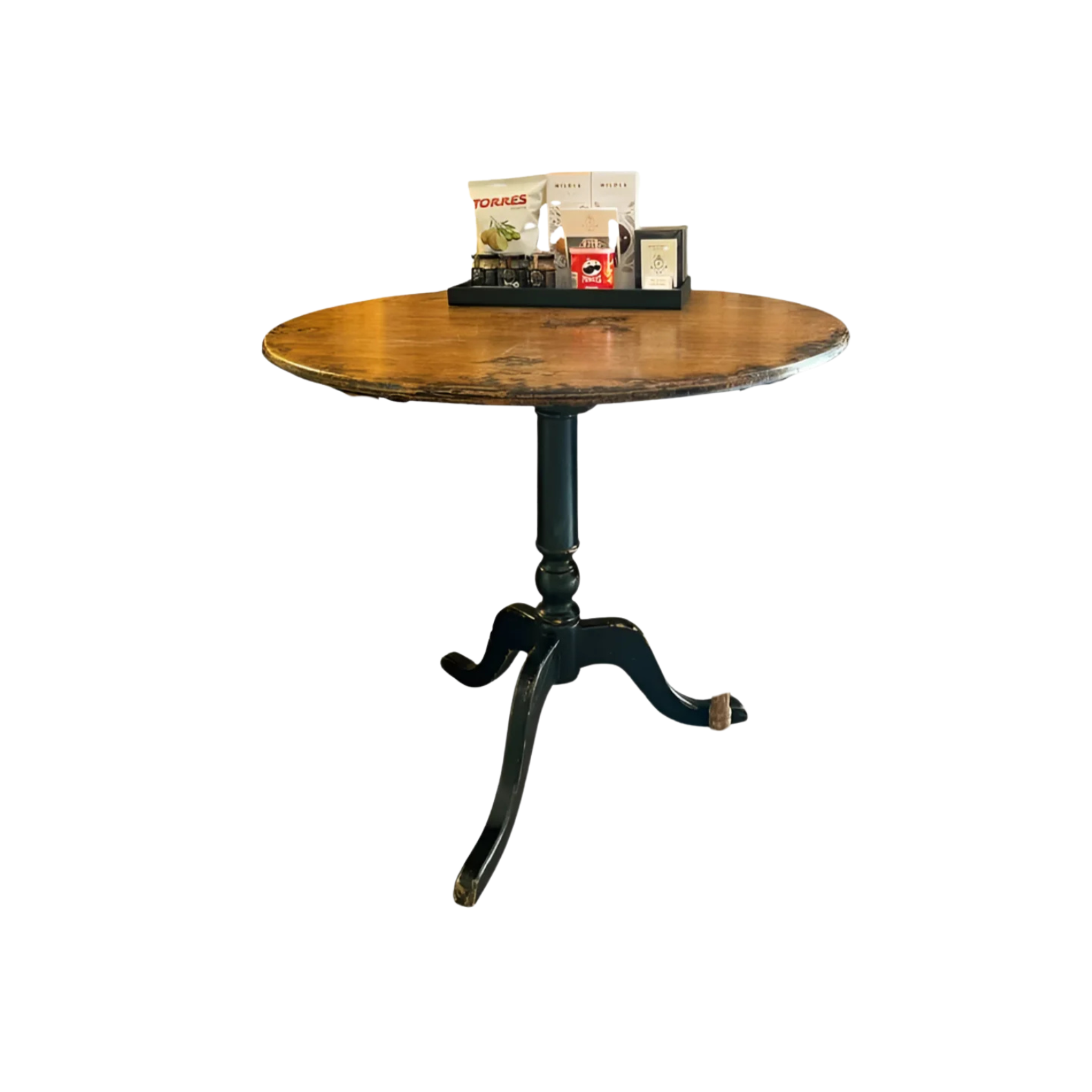 Mesa redonda para salón de madera y negra