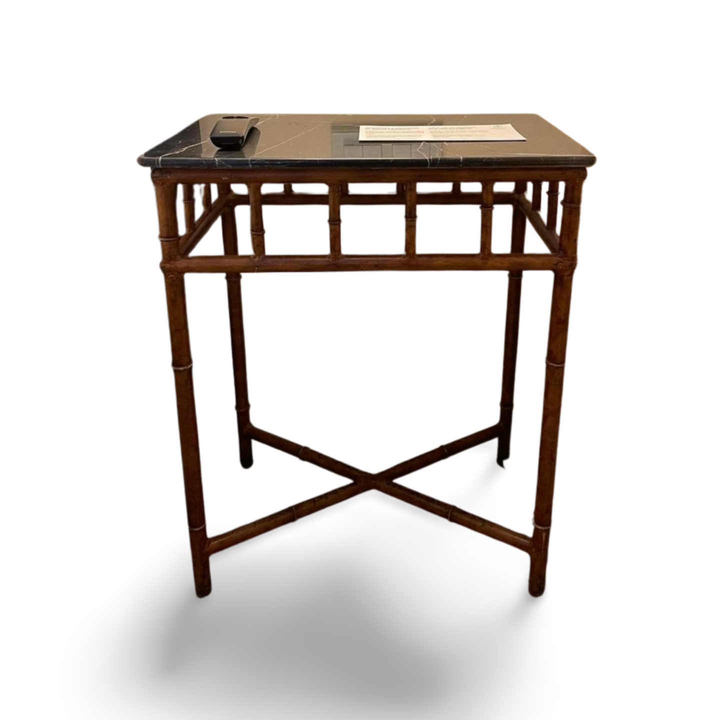 madera y su superficie es de mármol negro pulido.