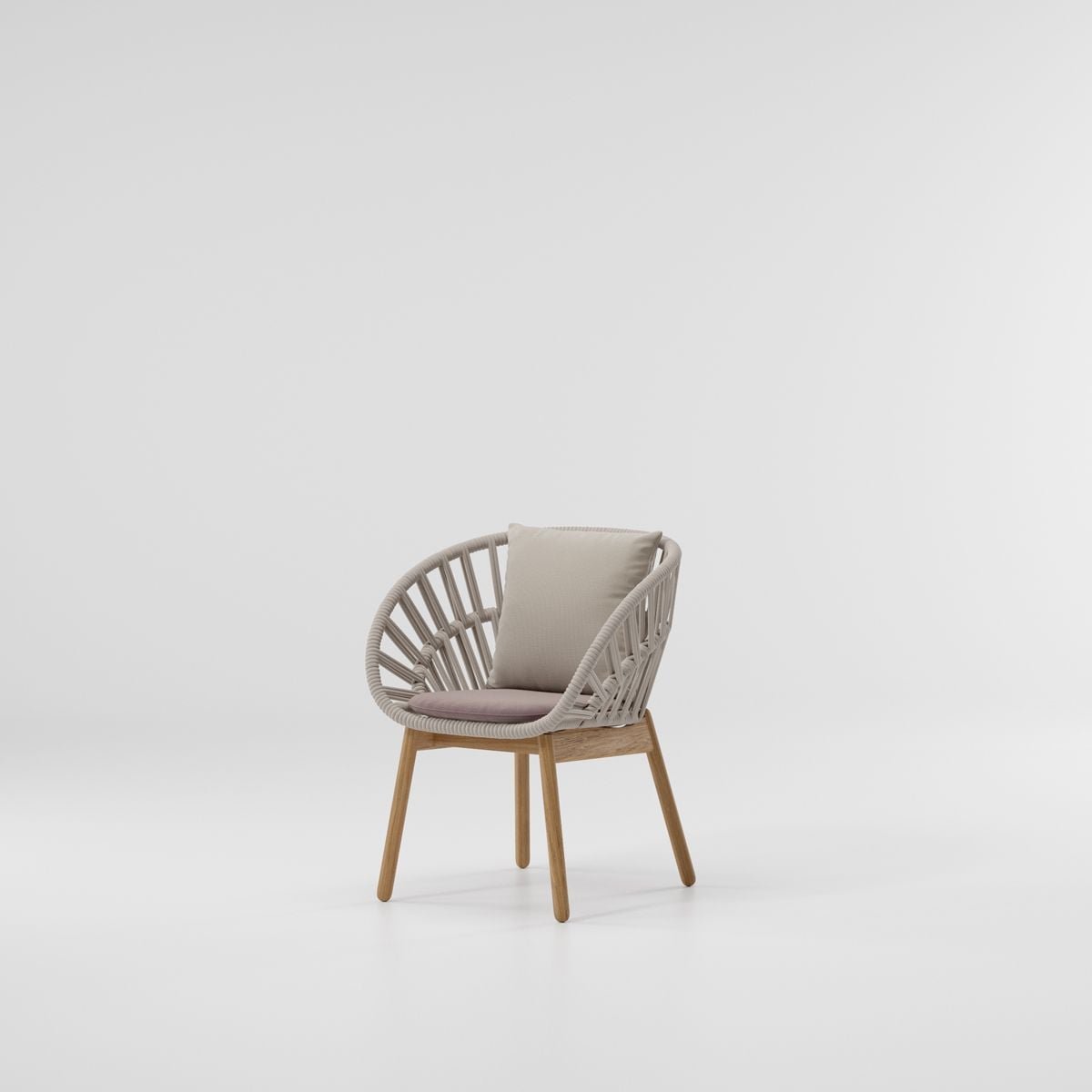 Silla de la marca Kettal de diseño con estructura resistente y respaldo trenzado. Pensada para un uso cómodo y estable en espacios exteriores.