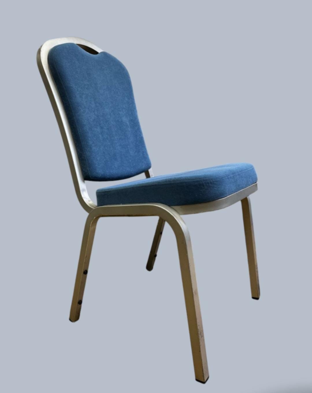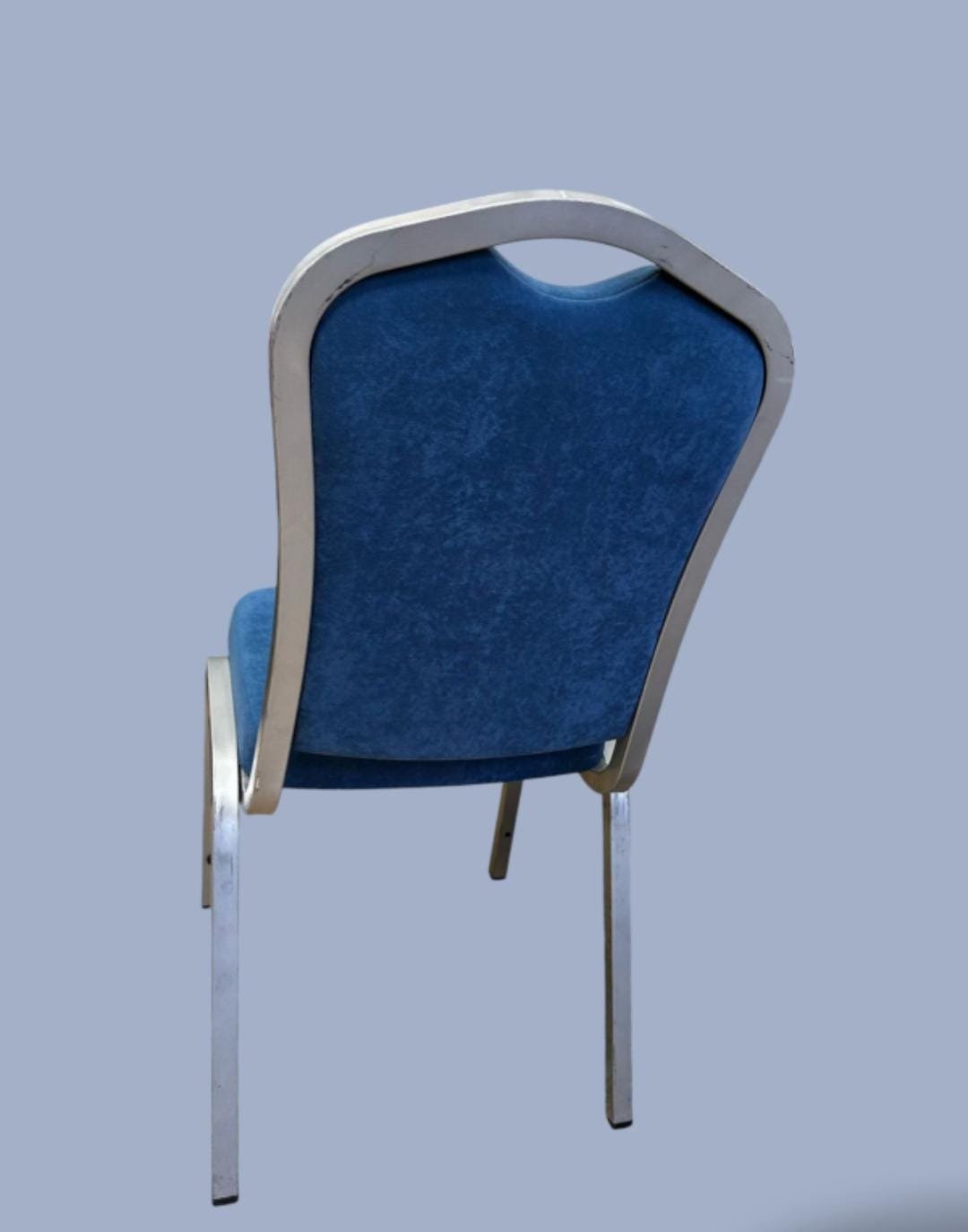 SILLA METÁLICA TAPIZADA EN AZUL – IDEAL PARA EVENTOS – FUNDA BLANCA PARA SILLA DISPONIBLE – SE PUEDE RESTAURA, PINTAR LA PARTE METÁLICA Y RETAPIZAR LA TELA